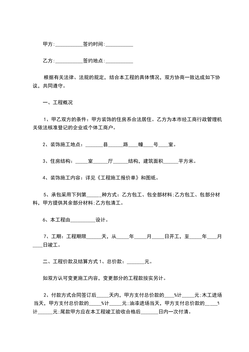 2、装饰施工地点:_______县______路____幢____号____室。