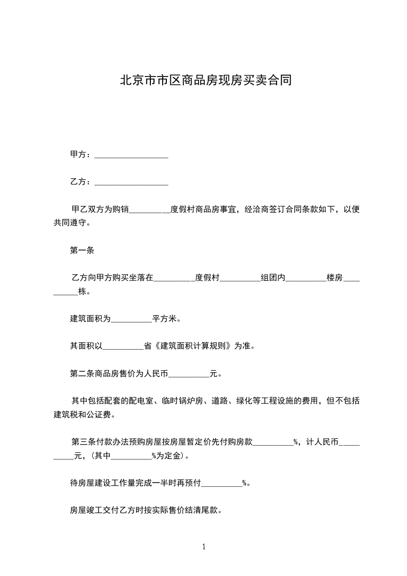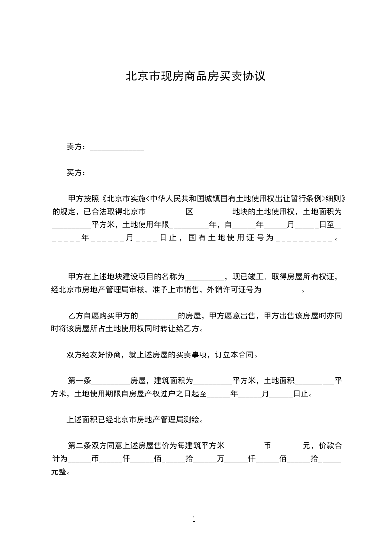 第二条双方同意上述房屋售价为每建筑平方米__________币________元,价款合计为______币______仟______佰______拾______万______仟______佰______拾______元整。