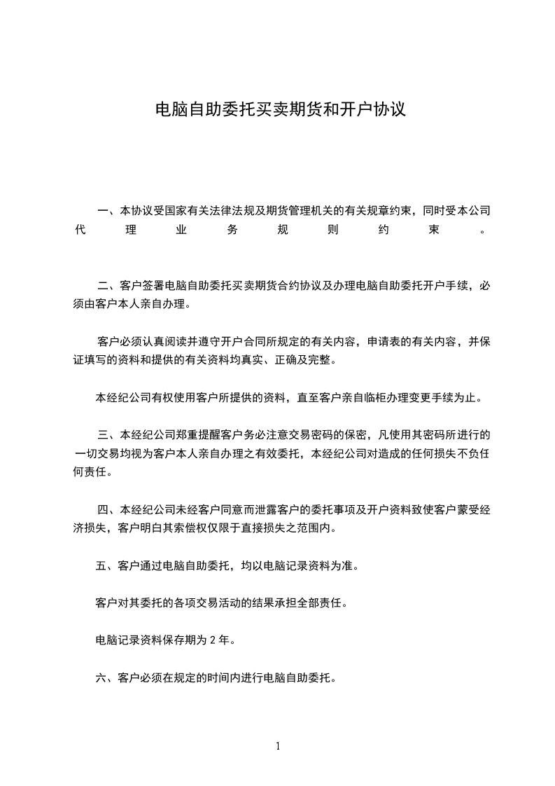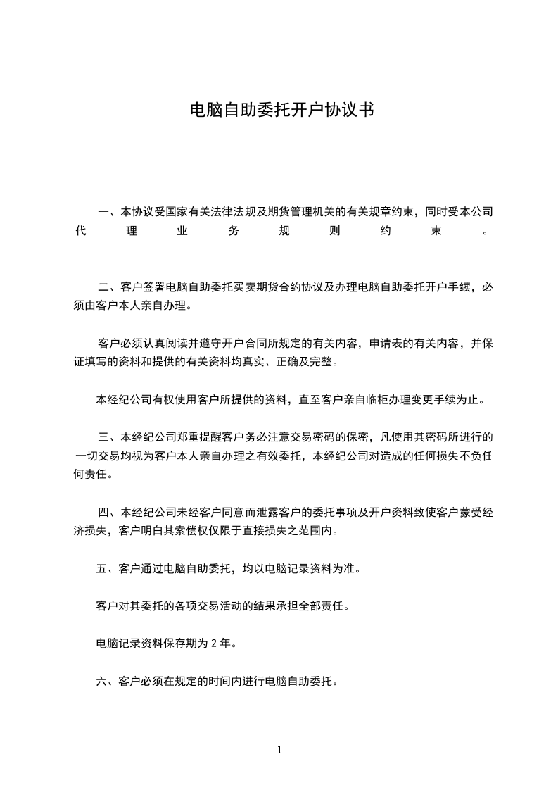 二、客户签署电脑自助委托买卖期货合约协议及办理电脑自助委托开户手续,必须由客户本人亲自办理。