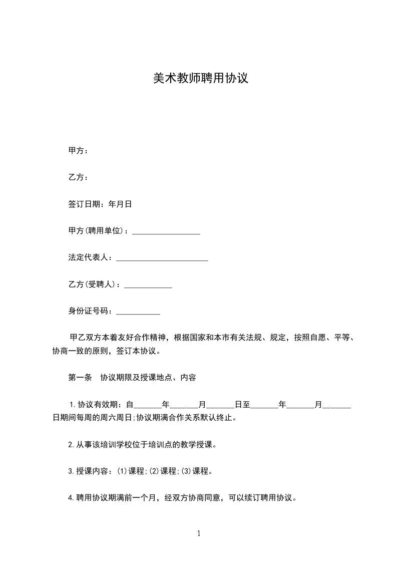 第一条 协议期限及授课地点、内容