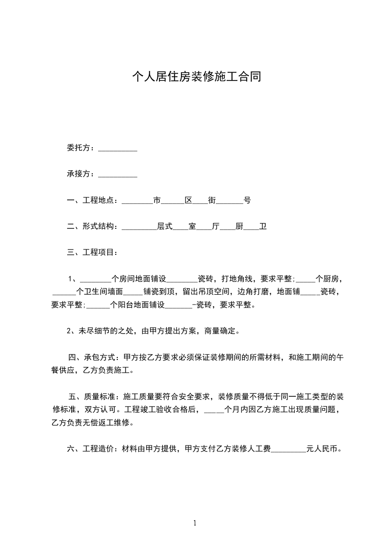 4、承包方式:______(包工包料、清包工、部分承包)。