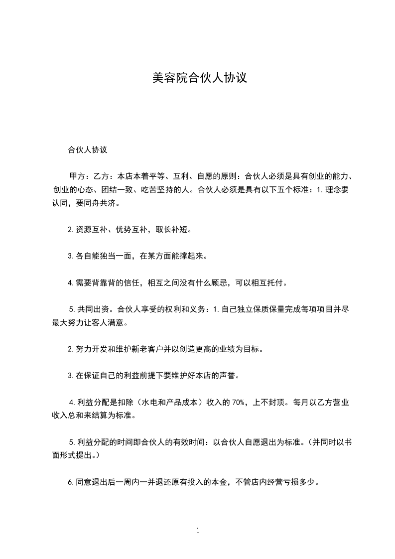 - 遵守合伙协议,维护美容院的利益;