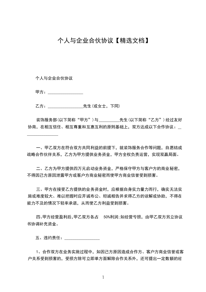 1. 合伙人违反本协议约定,应向其他合伙人承担违约责任,具体违约责任为:____________________。