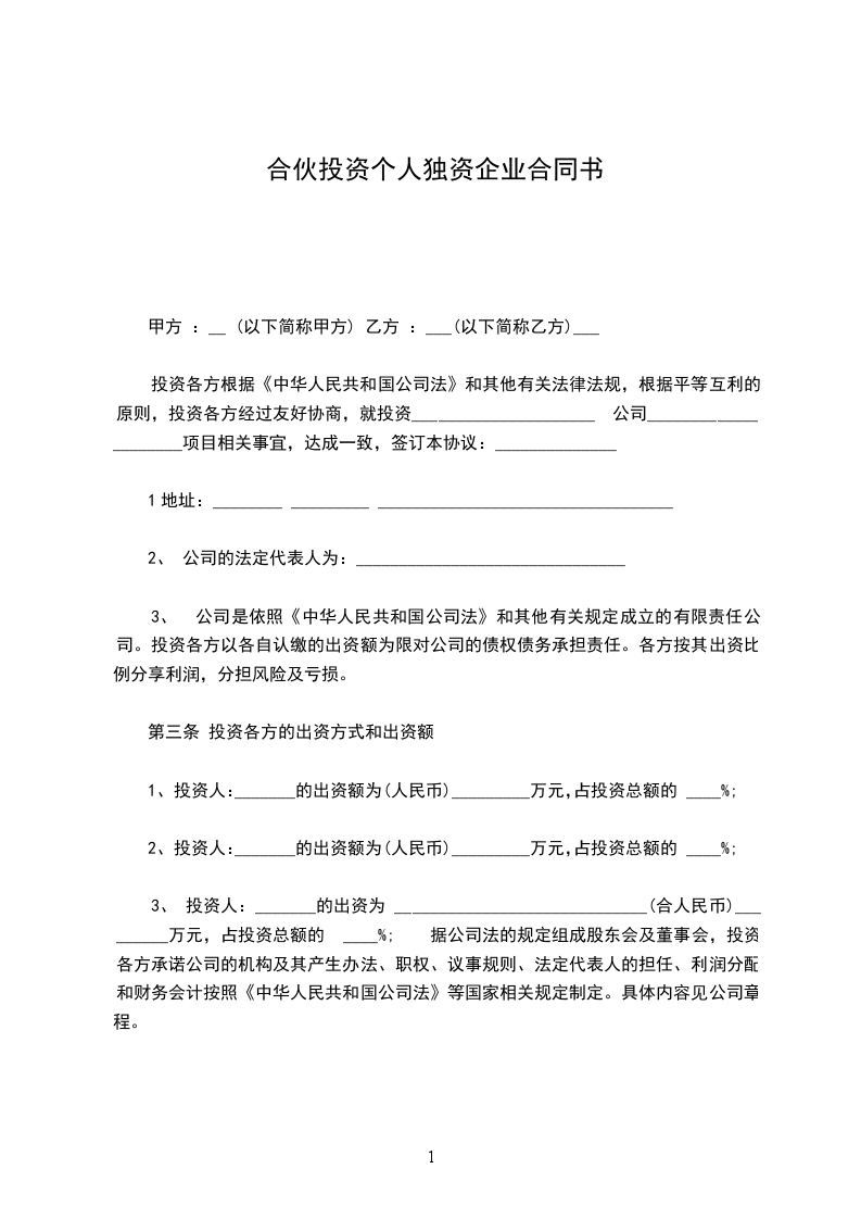 - 利润分配方式为:按照各合伙人的出资比例进行分配,即合伙人[姓名 1]分配比例为______%,合伙人[姓名 2]分配比例为______%,以此类推。