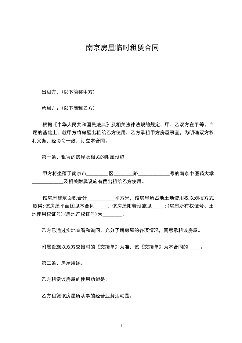 甲方将坐落于南京市_________区________路_____________号的南京中医药大学_____________及相关附属设施有偿出租给乙方使用。