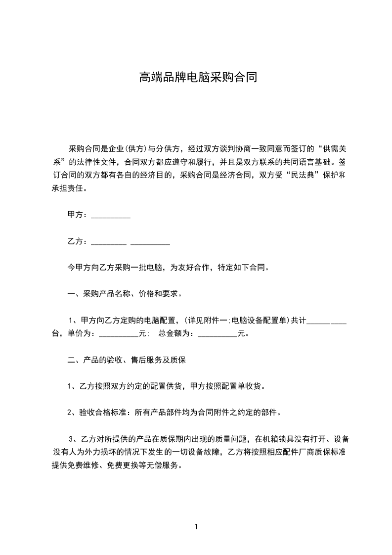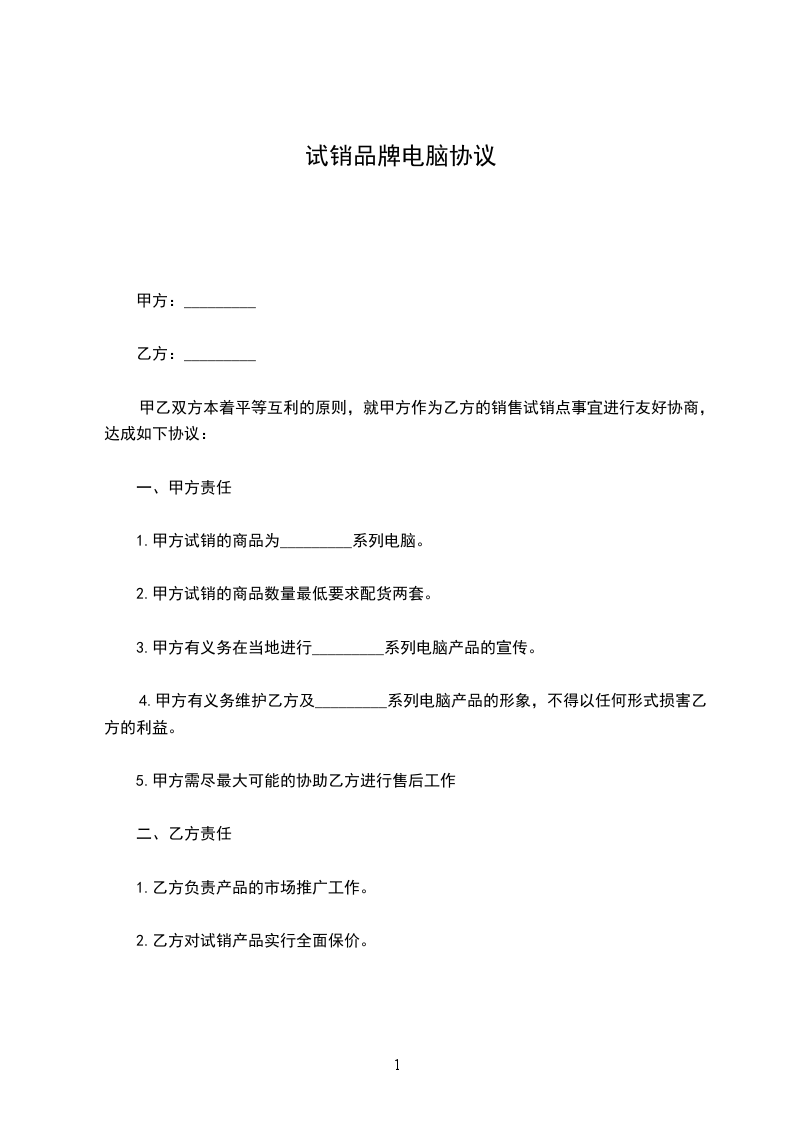 第一条甲方同意自行购买电脑台,并将电脑出租给乙方。