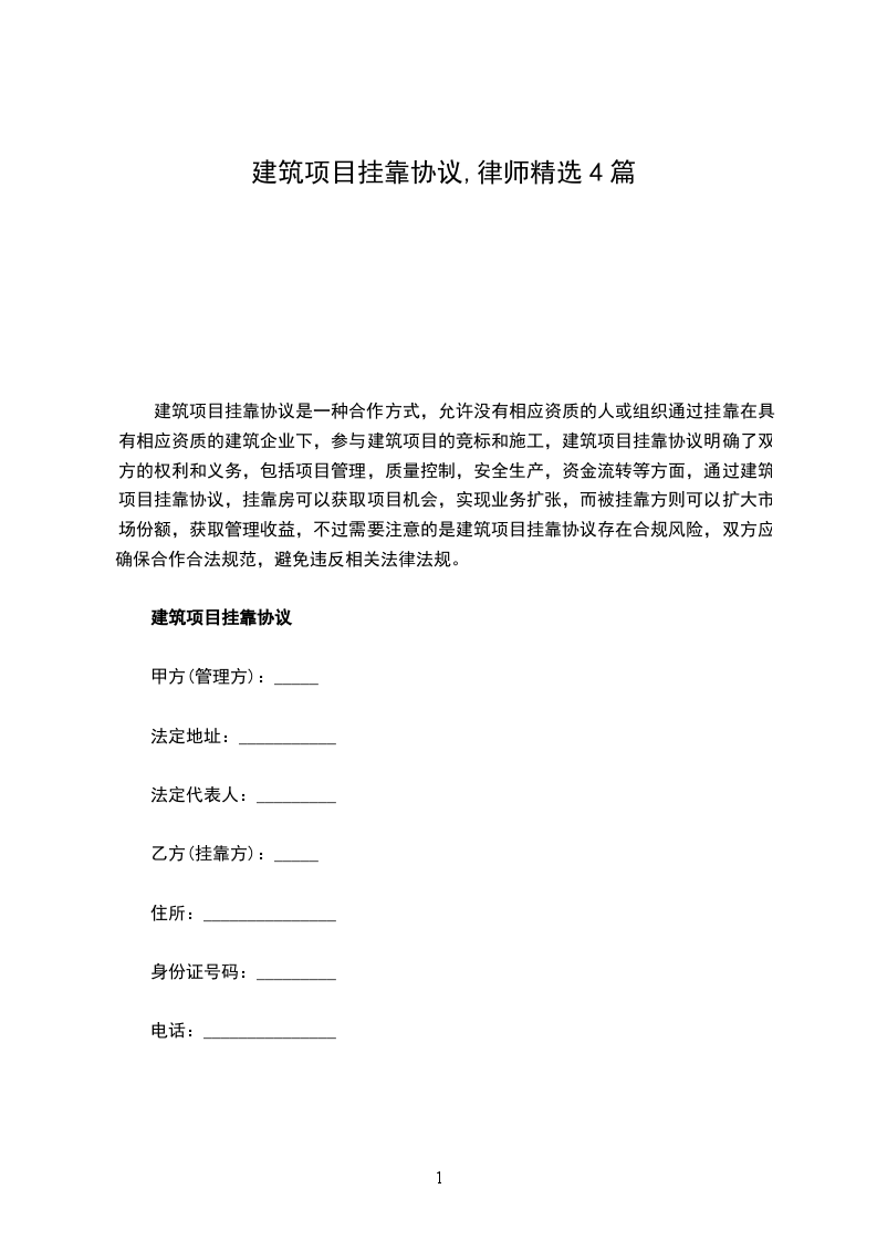 乙方(挂靠方):_____住所:_______________身份证号码:_________电话:_______________