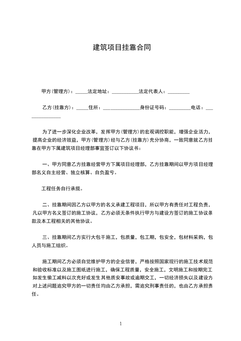 为了进一步深化企业改革,发挥甲方(管理方)的宏观调控职能,增强企业活力,提高企业的经济效益,甲方(管理方)经与乙方(挂靠方)充分协商,一致同意就乙方挂靠在甲方下属建筑项目经理部事宜签订以下协议书: