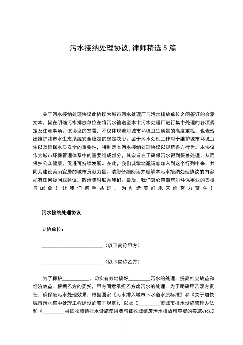 1. 乙方同意接纳甲方排放的污水,接纳量为每日____立方米,上下浮动范围为____%。