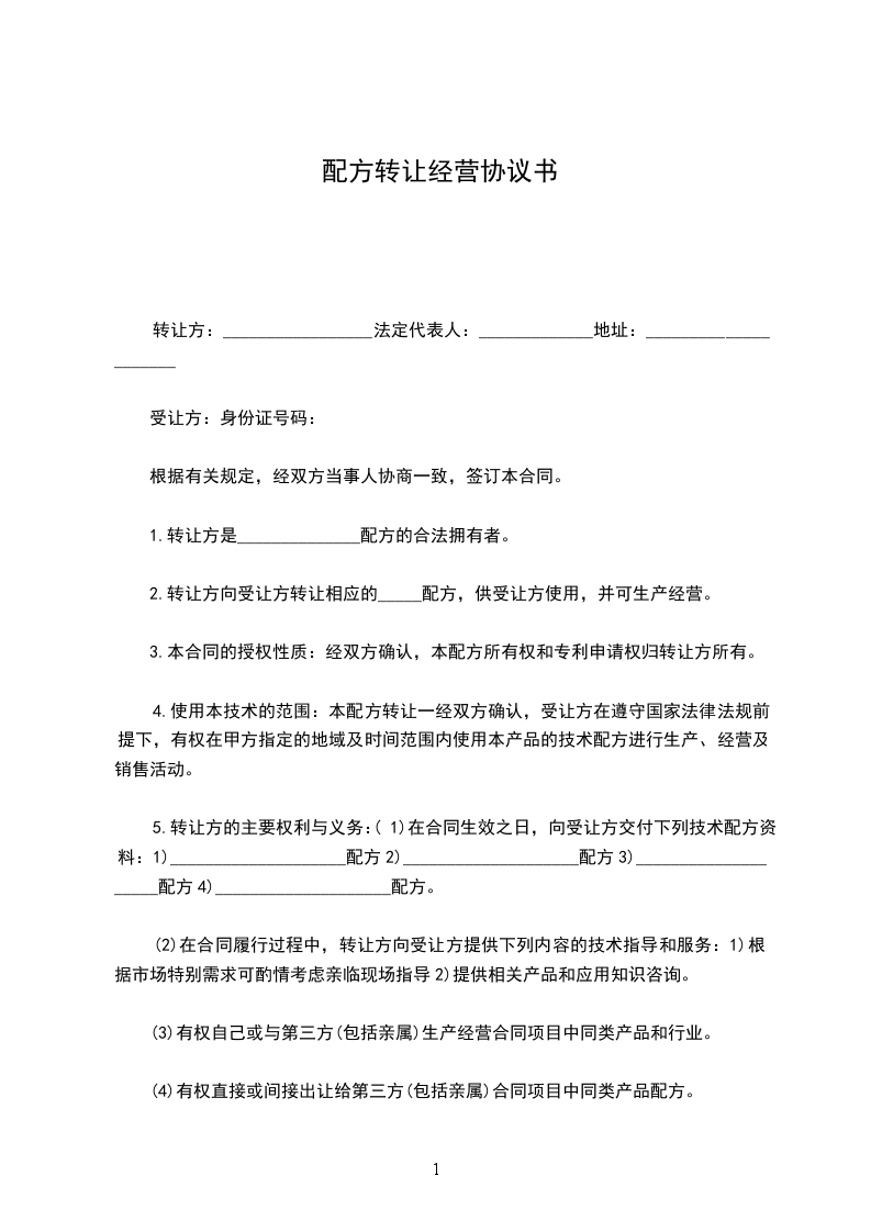 篇4配方转让协议