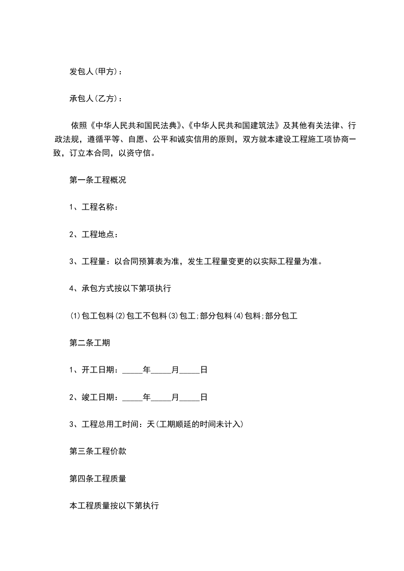 依照《中华人民共和国民法典》、《中华人民共和国建筑法》及其他有关法律、行政法规,遵循平等、自愿、公平和诚实信用的原则,双方就本建设工程施工项协商一致,订立本合同,以资守信。