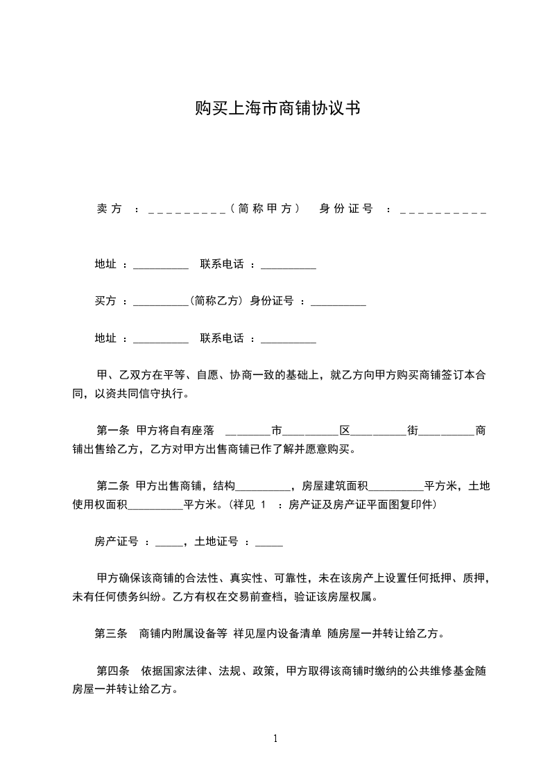 甲方出租的商铺坐落于_______________,建筑面积_____平方米。
