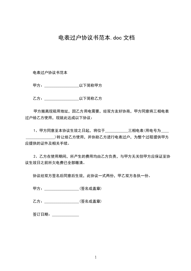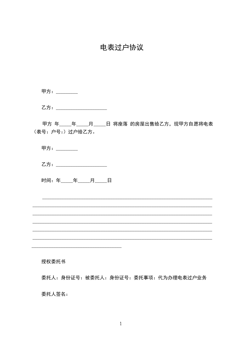 1.甲方同意将位于[具体地址]的电表过户给乙方,电表编号为[电表编号]。