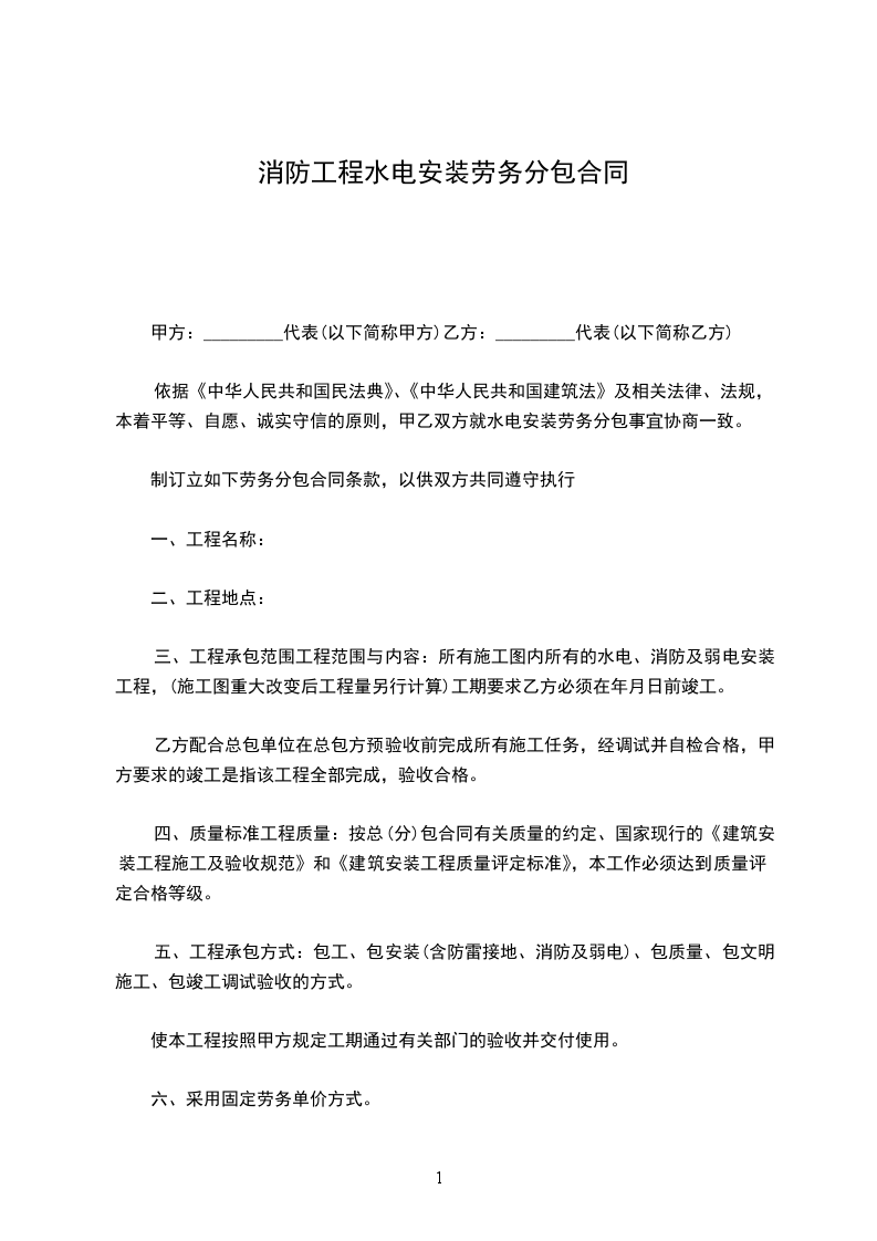 依据《中华人民共和国民法典》、《中华人民共和国建筑法》及相关法律、法规,本着平等、自愿、诚实守信的原则,甲乙双方就水电安装劳务分包事宜协商一致。