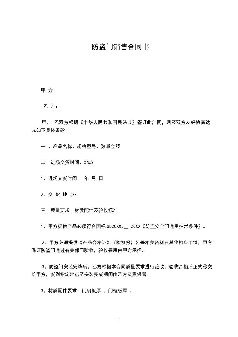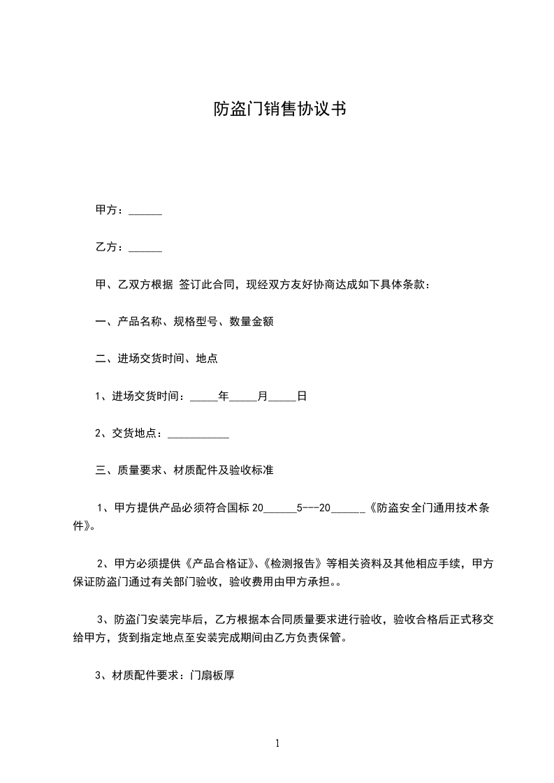 1、甲方提供产品必须符合国标17565---1998《防盗安全门通用技术条件》。