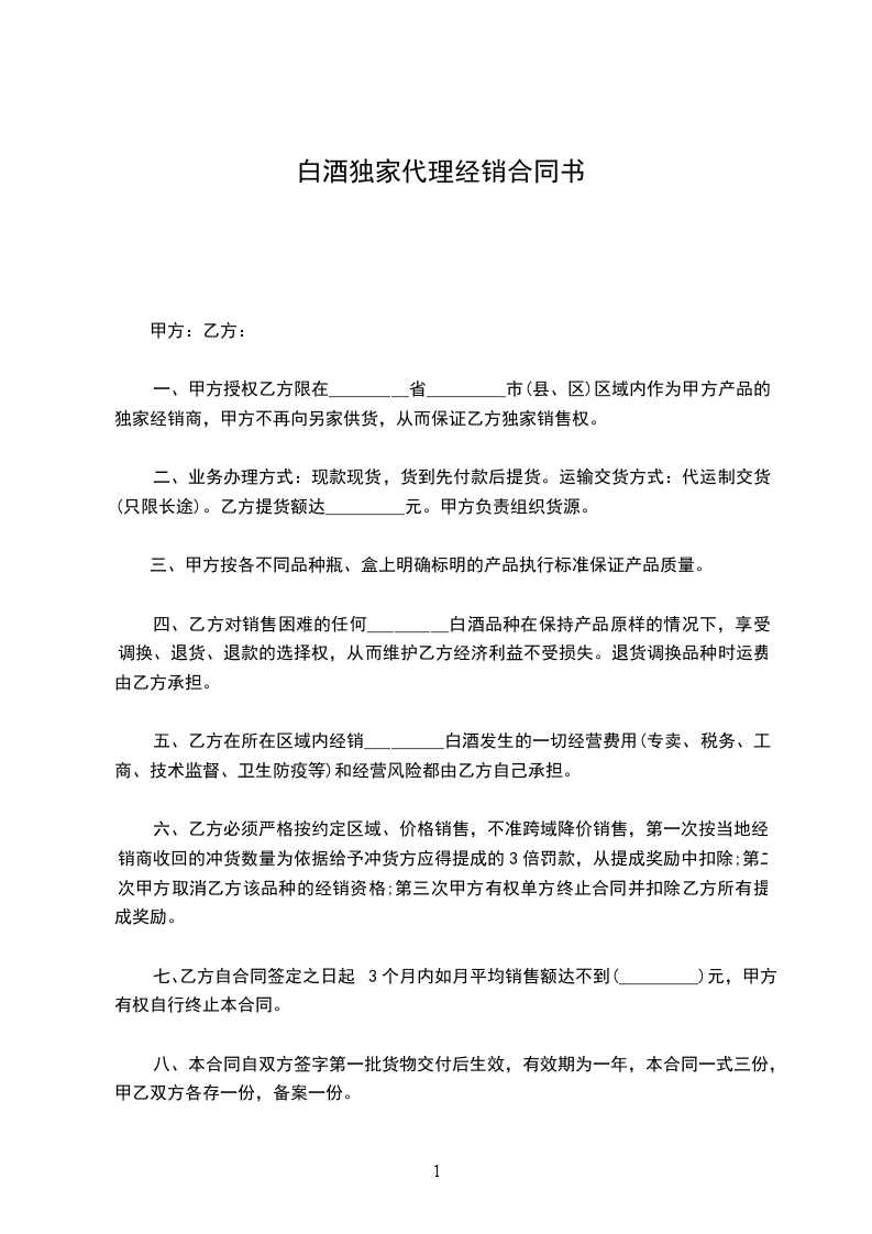 五、乙方在所在区域内经销_________白酒发生的一切经营费用(专卖、税务、工商、技术监督、卫生防疫等)和经营风险都由乙方自己承担。