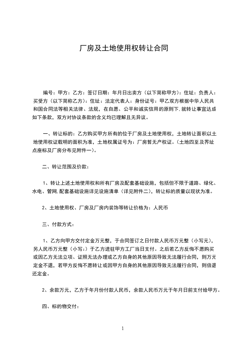 5、除双方另有书面约定外,厂房、土地及附属设施应按签约时现状完好地转移交付乙方。