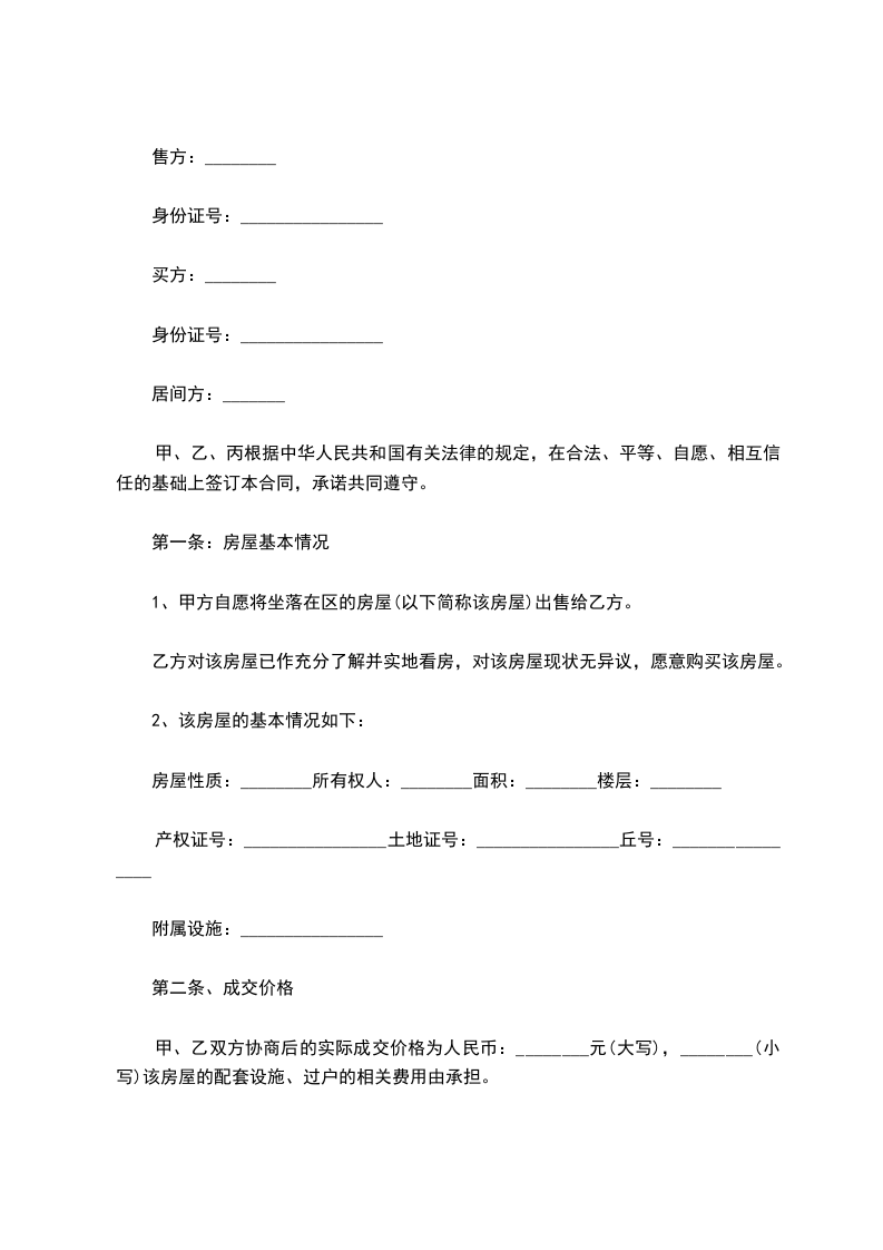 2、丙方为甲乙双方提供交易机会,并促成交易成功,协助甲乙双方办理产权过户手续。