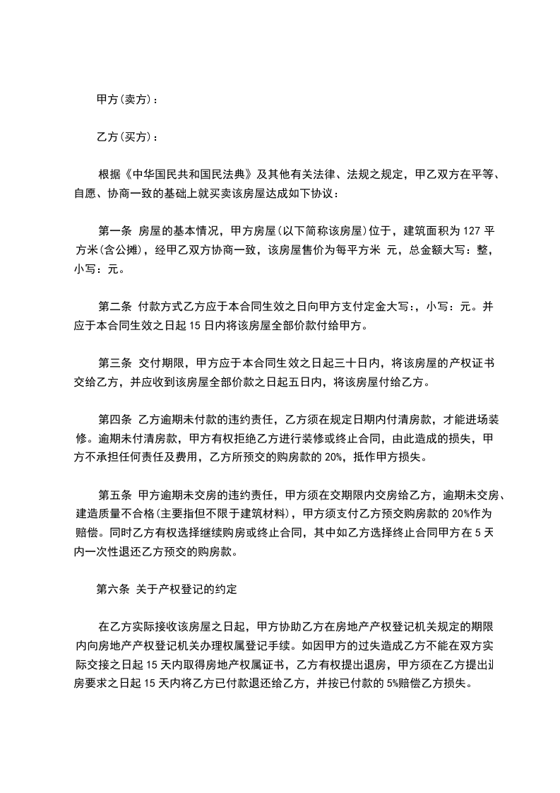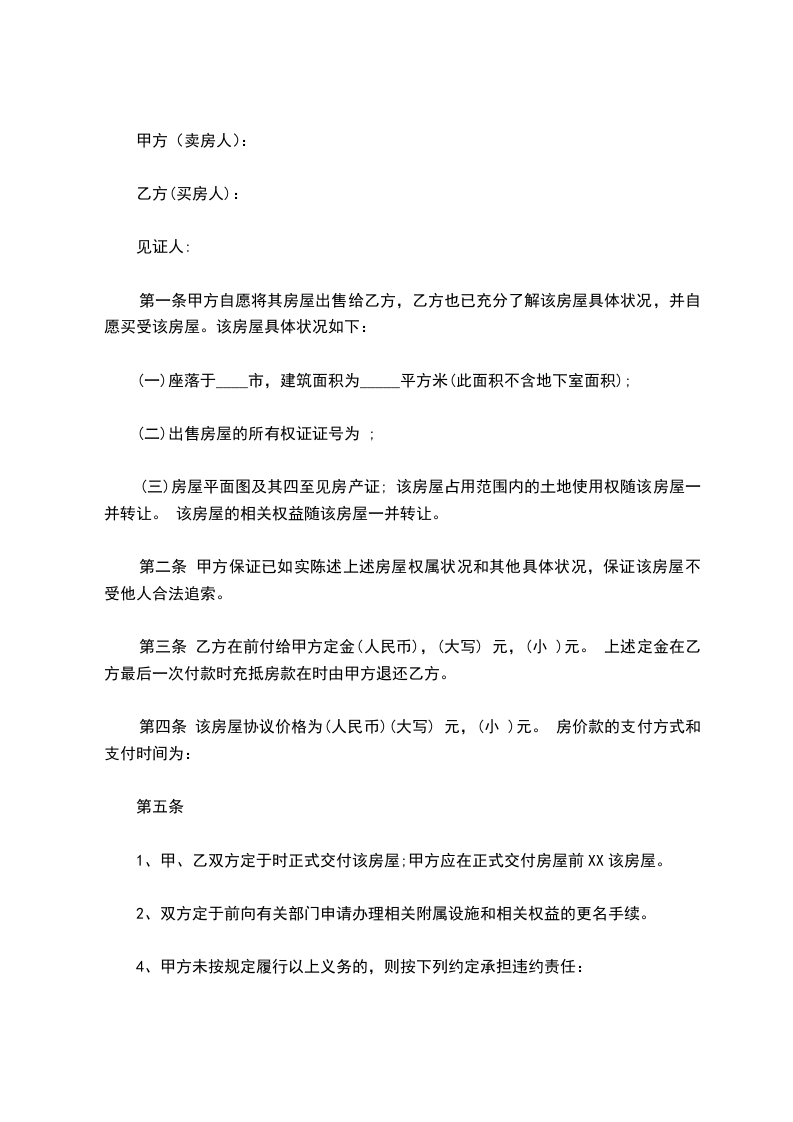 1、甲方自愿将坐落在区的房屋(以下简称该房屋)出售给乙方。