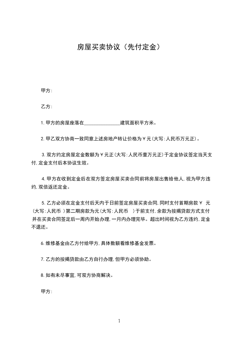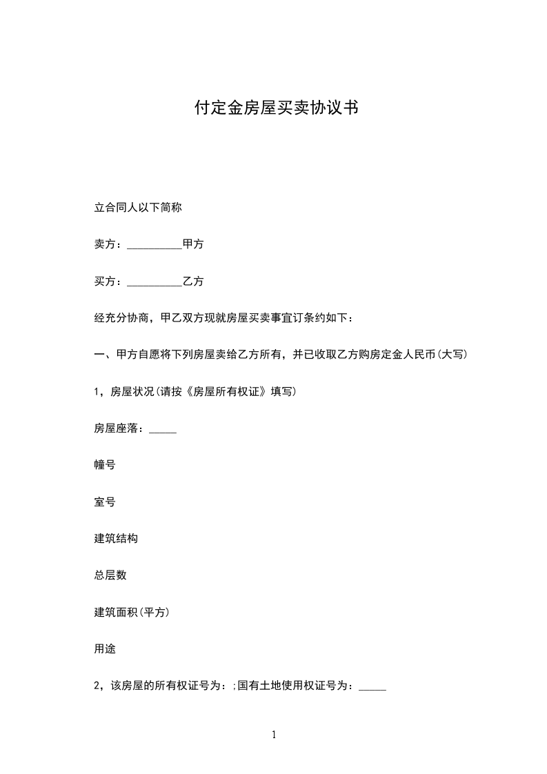 (1)乙方于________年____月____日向甲方支付该房屋的定金。