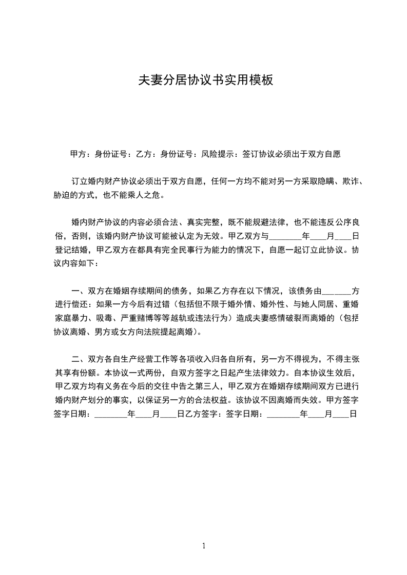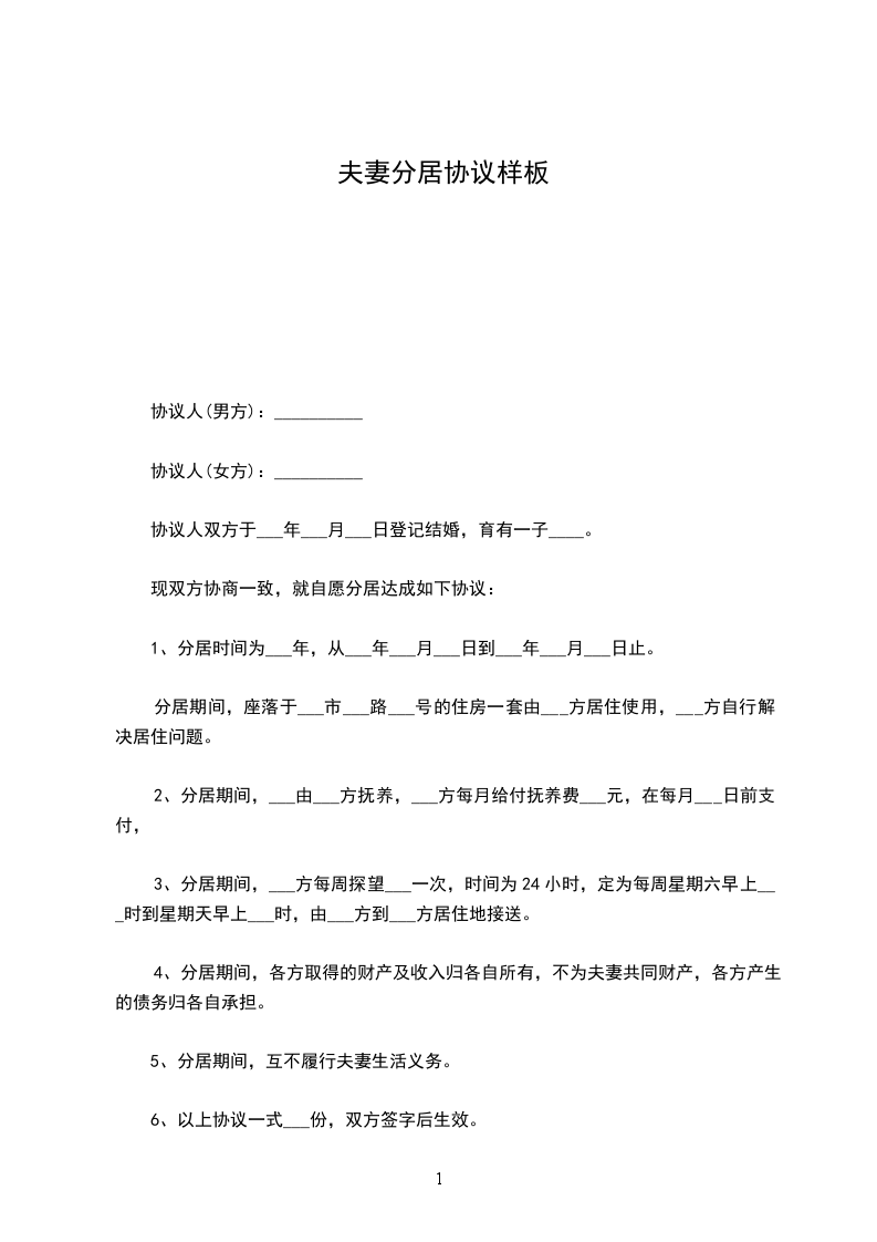 1、分居时间为___年,从___年___月___日到___年___月___日止。