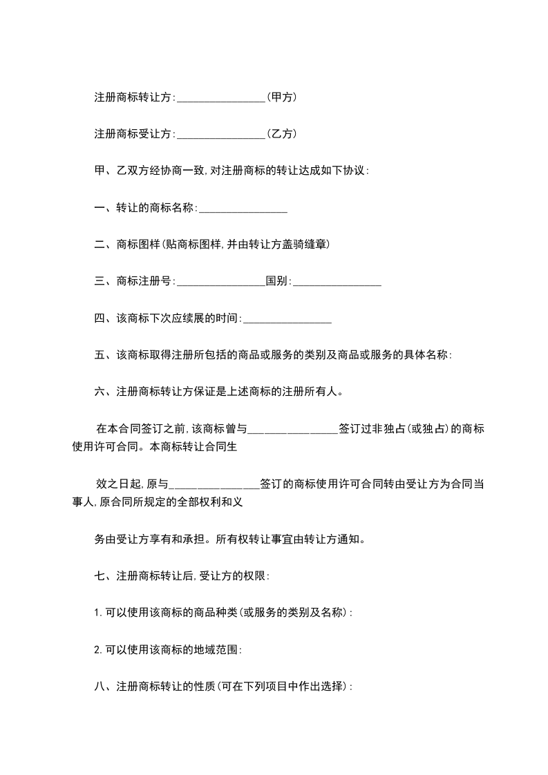 八、注册商标转让的性质(可在下列项目中作出选择):