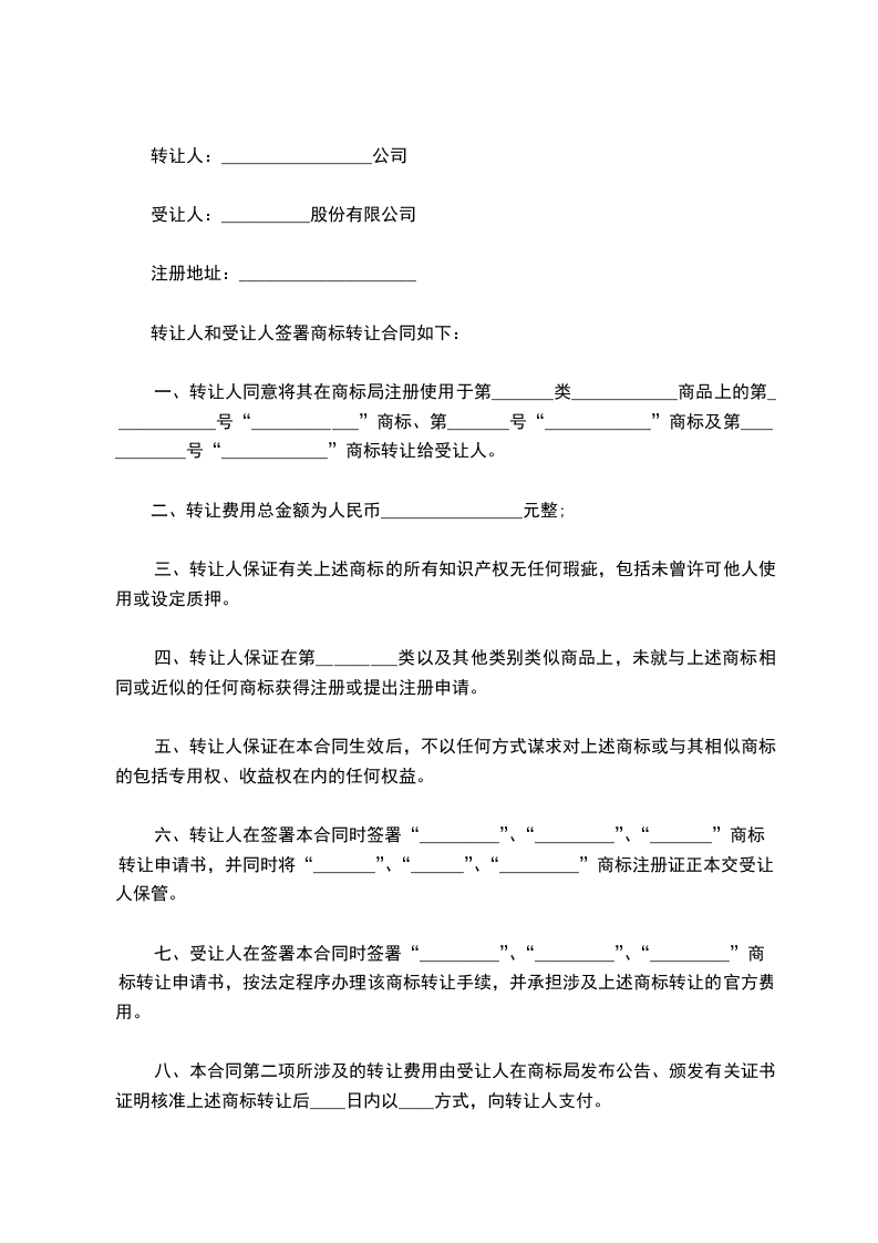 属非永久性商标权转让的,注册商标转让的期限为____年,自___年___月___日至___