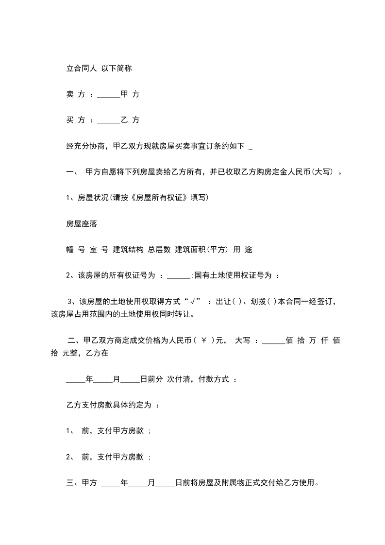 (2)乙方于______年______月______日前向甲方付清房产价款。