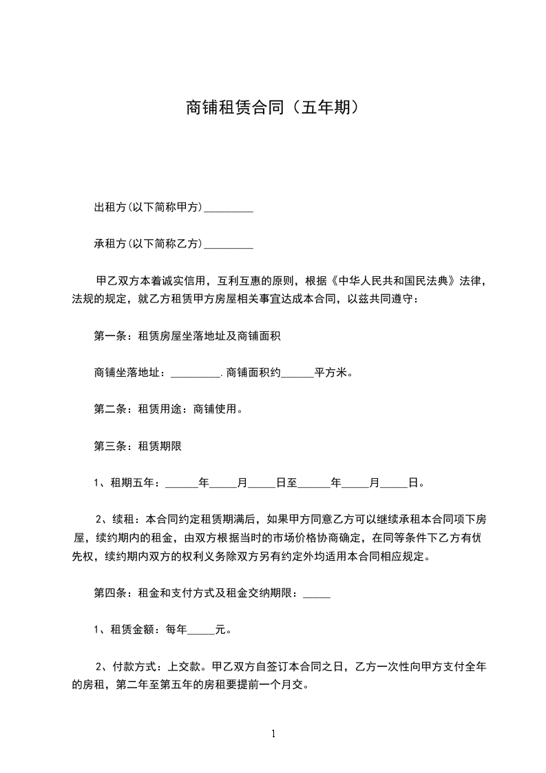 第五年度租金(不含税):人民币____________元(大写:__________________元整)。