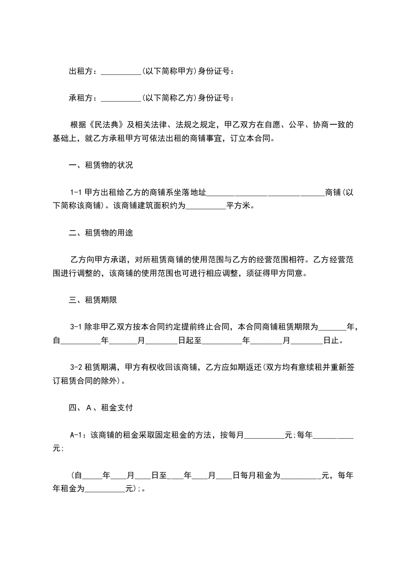 第一条 租赁商铺广场(以下统称“商铺”),租赁面积约:__________________平方米(乙方同意不就租用面积与政府测绘或其他组织个人测量面积有出入而进行任何租金调整)。