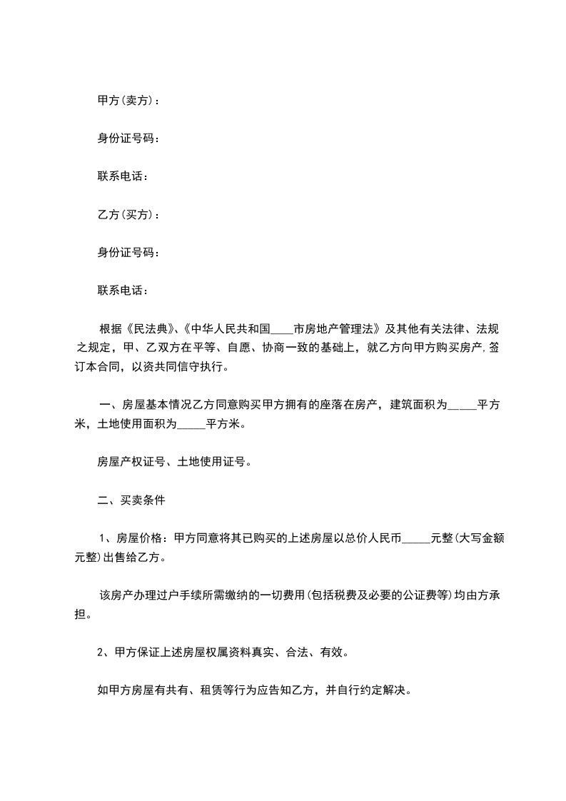 根据《民法典》、《中华人民共和国____市房地产管理法》及其他有关法律、法规之规定,甲、乙双方在平等、自愿、协商一致的基础上,就乙方向甲方购买房产,签订本合同,以资共同信守执行。