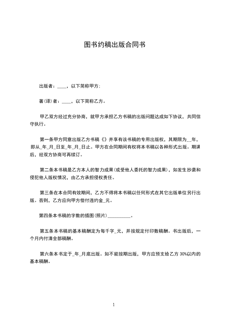 鉴于甲方有意约稿乙方创作[图书名称],乙方同意接受甲方约稿,双方经友好协商,依据《中华人民共和国民法典》等相关法律法规,就约稿事宜达成如下协议: