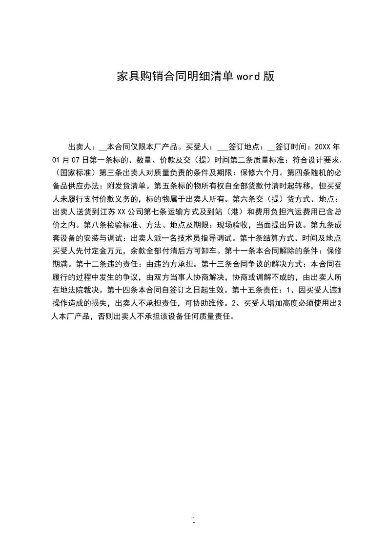 注:以上价格包含运输费、税费等一切费用。合同总金额为人民币______元整(大写:______元整)。