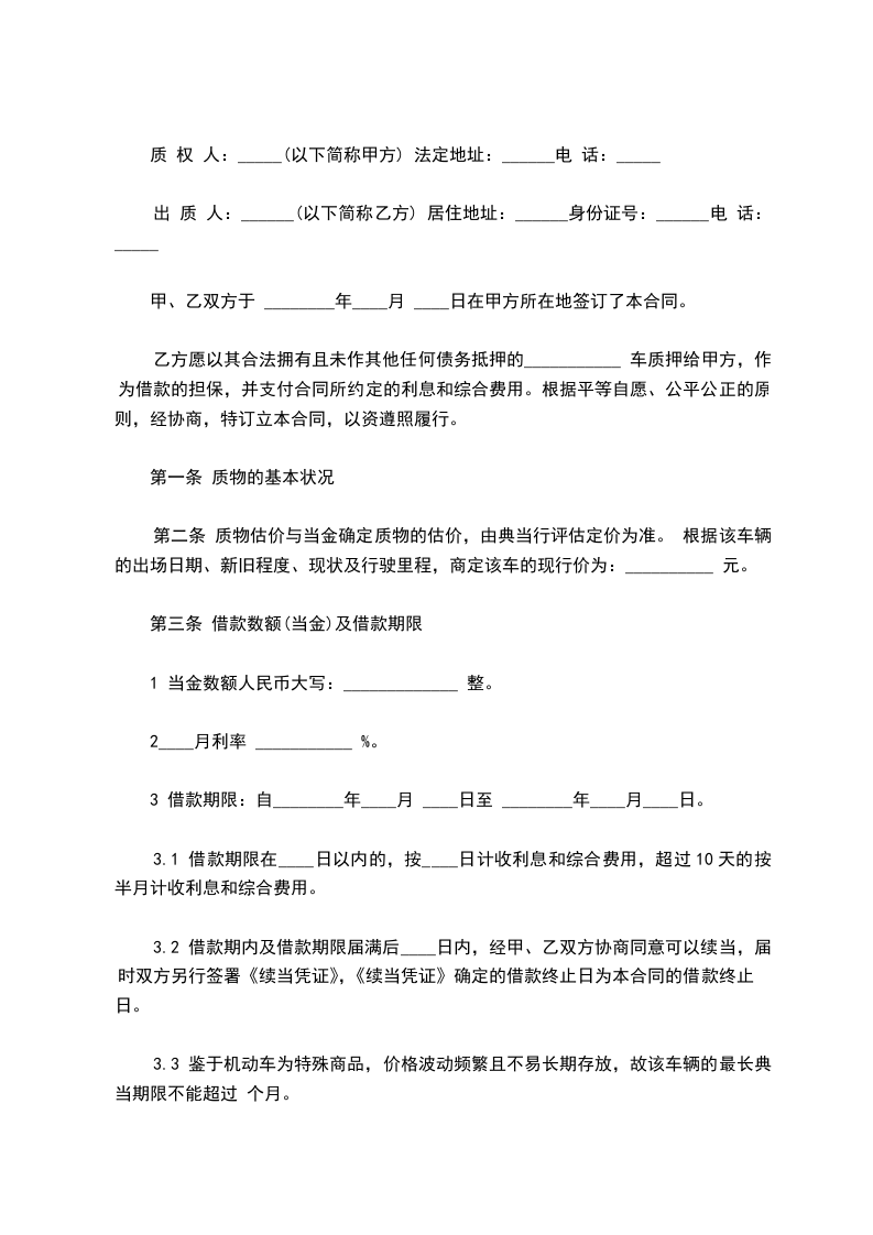 2.典当期限自______年______月______日起至______年______月______日止。