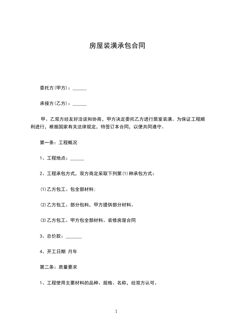 1、从_____年_____月_____日起至_____年_____月_____日止,工期为天,因甲方因素拖延,工期顺延;因乙方因素拖延工期,甲方可扣除乙方人工费50元/天。