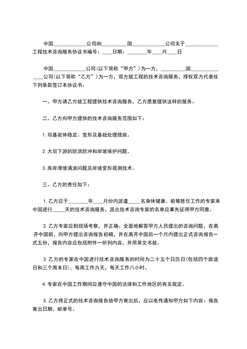 一、甲方请乙方就工程提供技术咨询服务,乙方愿意提供这样的服务。
