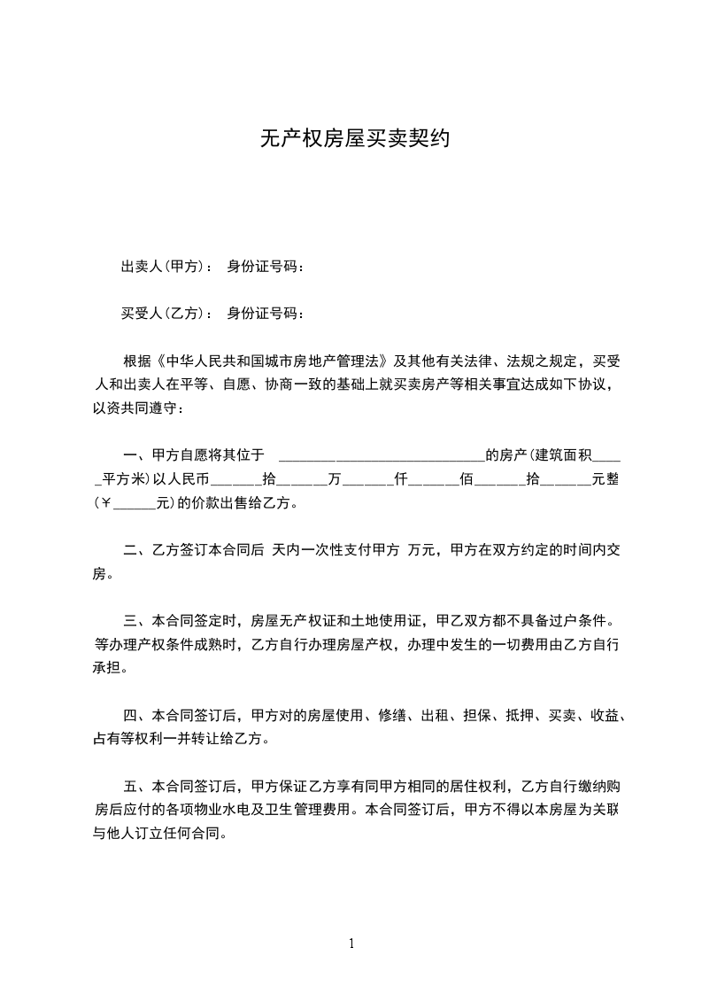 一、甲方自愿将其位于 _____________________________的房产及其土地使用权(一层车库一处,建筑面积_____平方米;车库门前附属场地____ _____平方米及附属卷闸门、防盗窗等设施,上述内容以下简称“本房屋”)以人民币_______拾 _______万_______仟_______佰_______拾_______元整(¥______ __ 元)的价款出售给乙方。