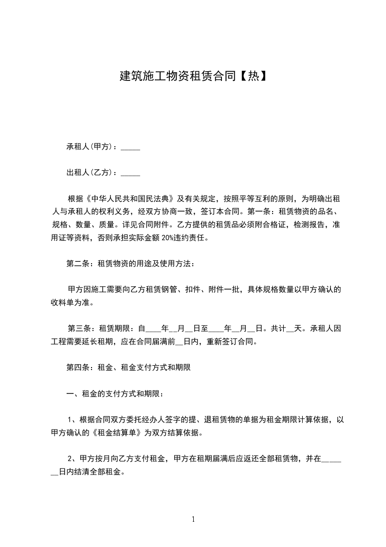 1.未按时间提供租赁物资,应向承租方偿付违约期租金%的违约金。