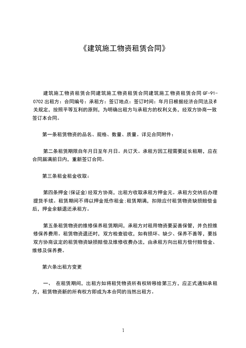 二、在租赁期间,承租方不得将租赁物资转让、转租给第三方使用,也不得变卖或作抵押品。
