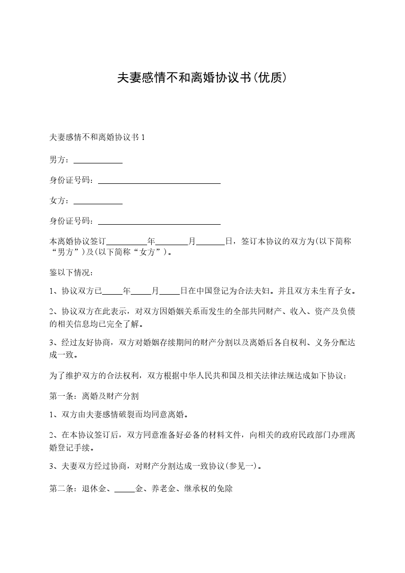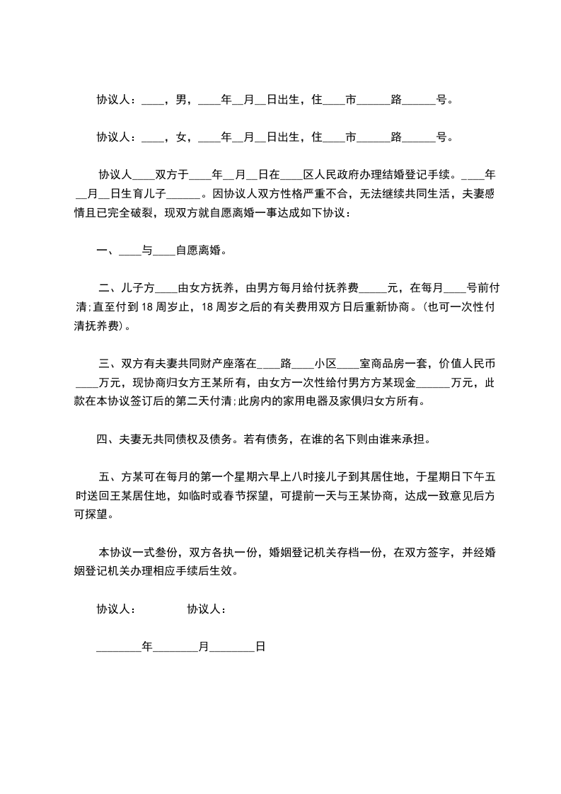 协议人(男方):________________________年________月________日