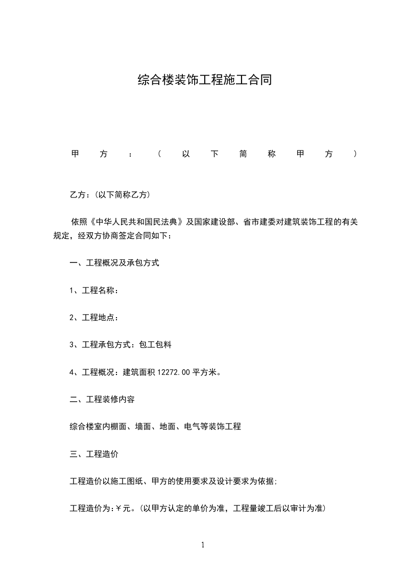 依照《中华人民共和国民法典》及国家建设部、省市建委对建筑装饰工程的有关规定,经双方协商签定合同如下: