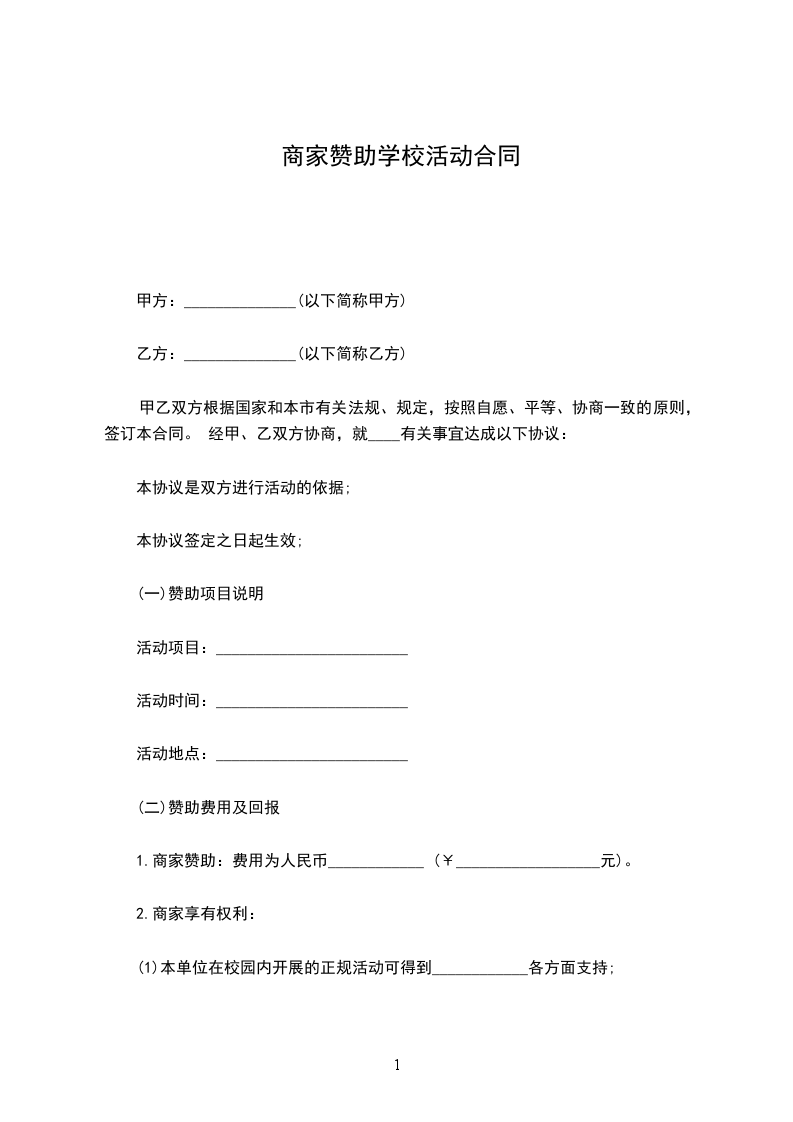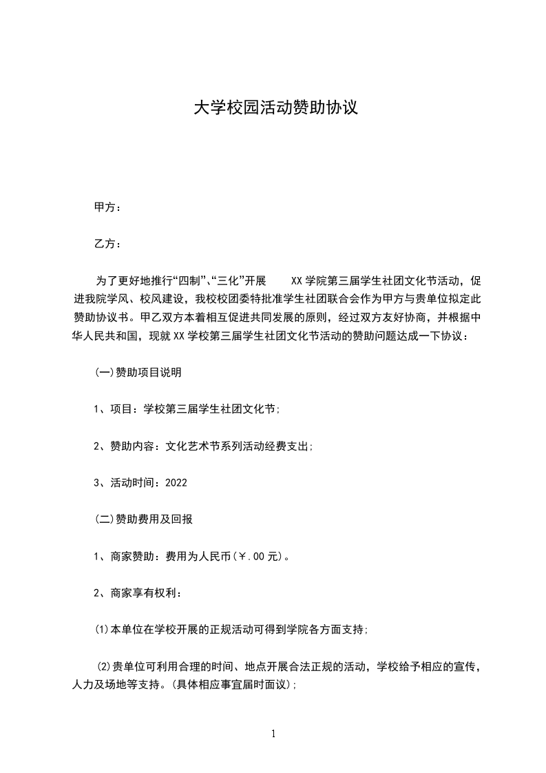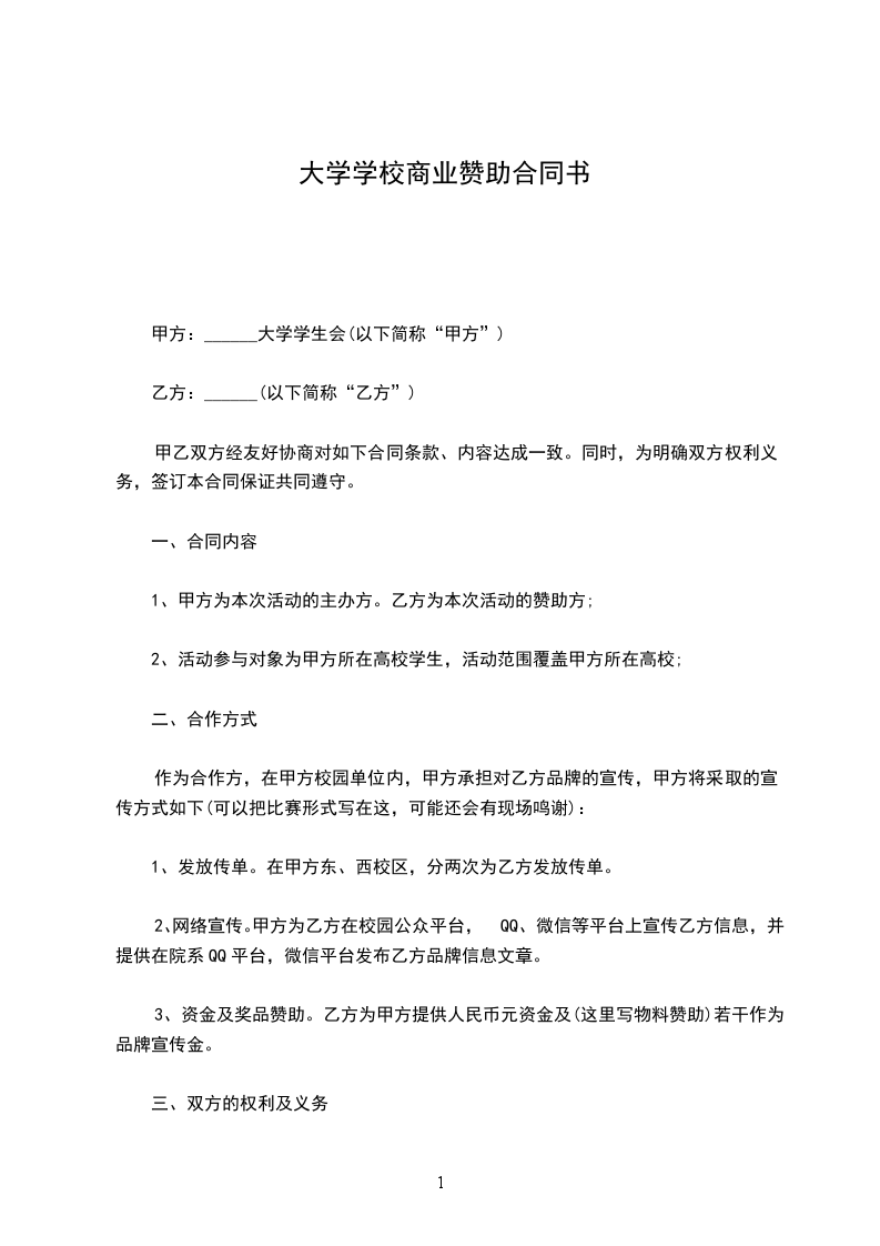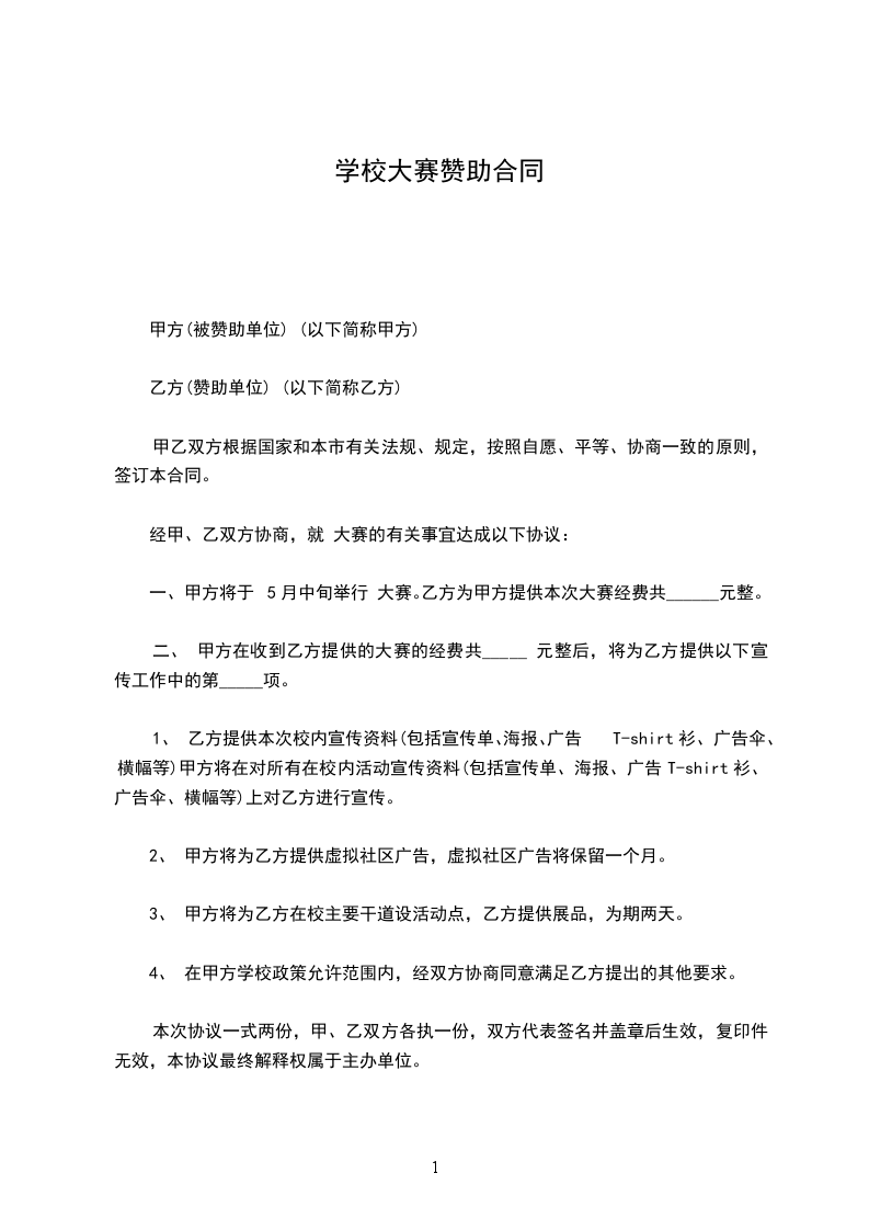 3、资金及奖品赞助。乙方为甲方提供人民币_____元资金及(这里写物料赞助)若干作为品牌宣传金。
