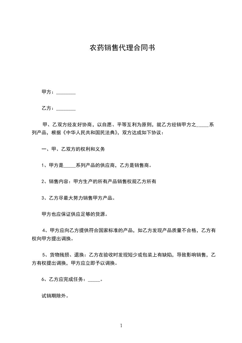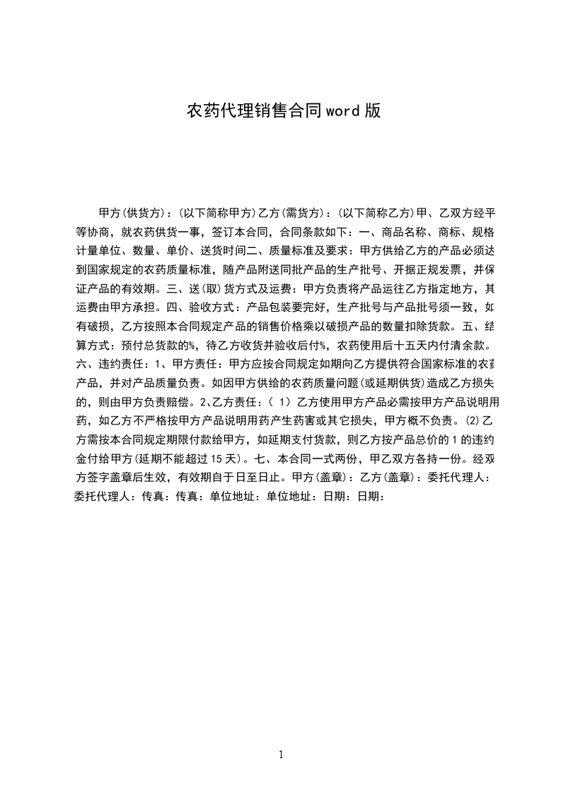 甲、乙双方经平等协商,就农药供货一事,签订本合同,合同条款如下: