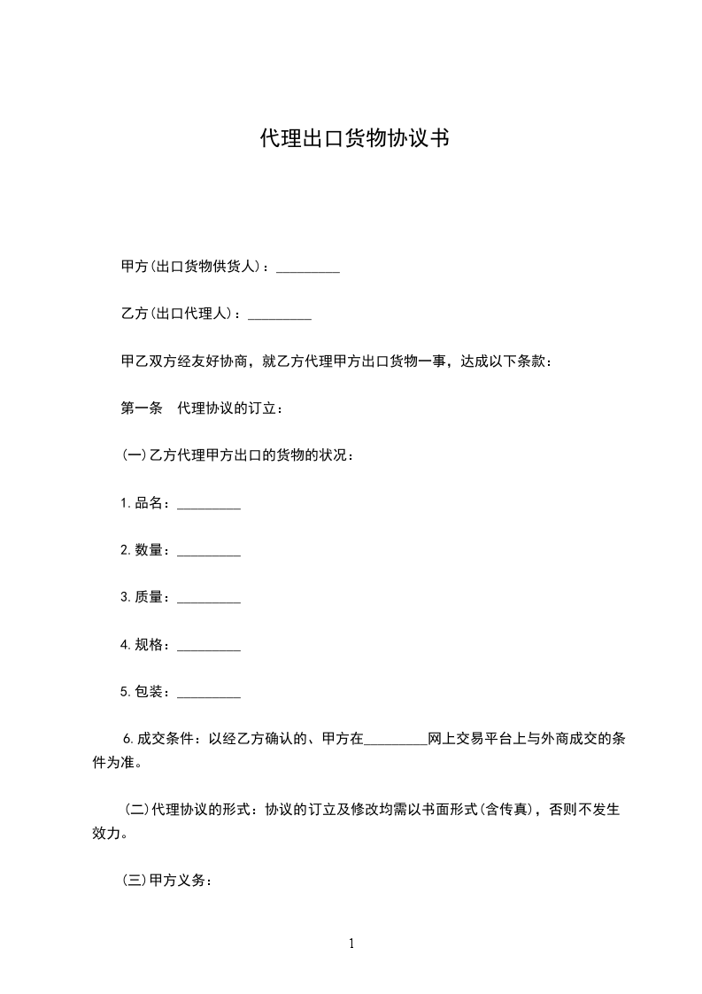 甲乙双方经友好协商,就乙方代理甲方出口货物一事,达成以下条款: