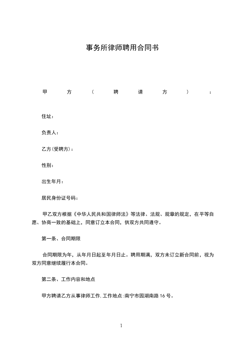 甲方聘请乙方从事律师工作,工作地点:南宁市园湖南路16号。