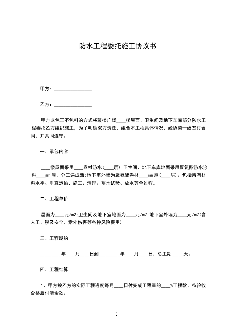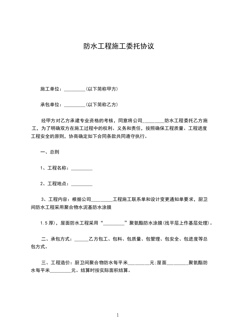经甲方对乙方承建专业资格的考核,同意将公司____________防水工程委托乙方施工,为了明确双方在施工过程中的权利、义务和责任,按照确保工程质量、工程进度、工程安全的原则,协商确定如下合同条款共同遵守执行。