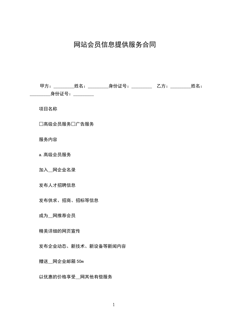 甲方注册成为本网信息服务,会员的服务费为人民币大写_________元整/年;付款方式为电汇;_________年_________月_________日之前付清全款,否则此合同无效。
