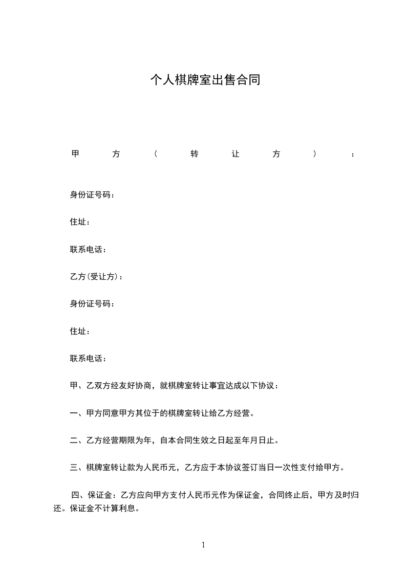 一、甲方同意甲方其位于的棋牌室转让给乙方经营。