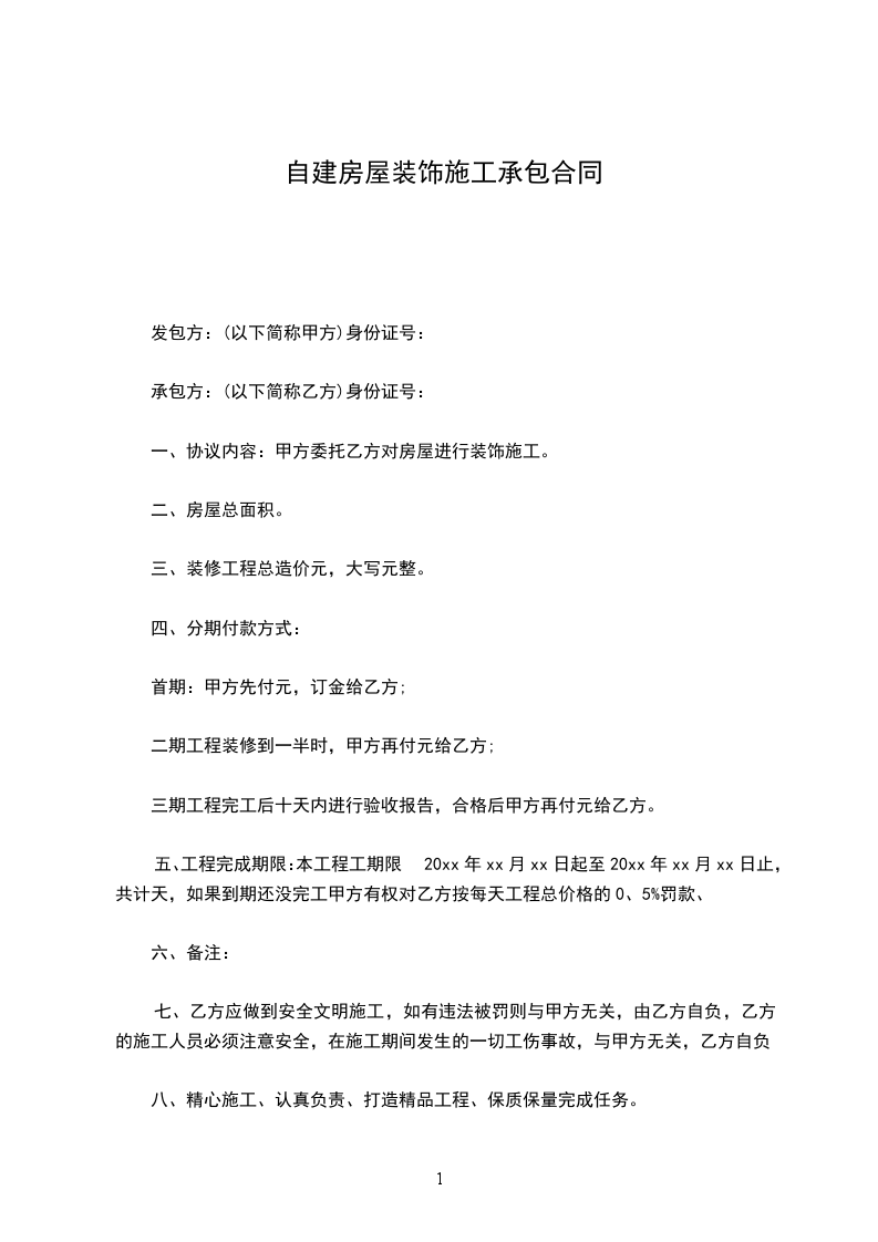 五、质量要求乙方应当按照国家规定的房屋质量标准和要求组织施工,不合格由乙方负责返工,返工费由乙方负责。