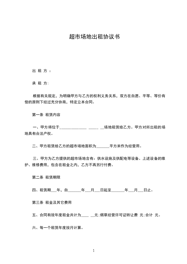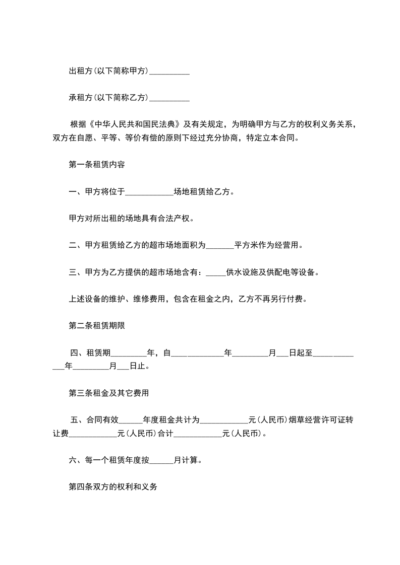 二、甲方租赁给乙方的超市场地面积为_______平方米作为经营用。
